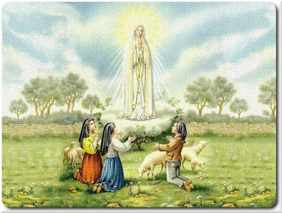 apparizione, il 13 maggio 1917, essa innalza i tre giovani veggenti